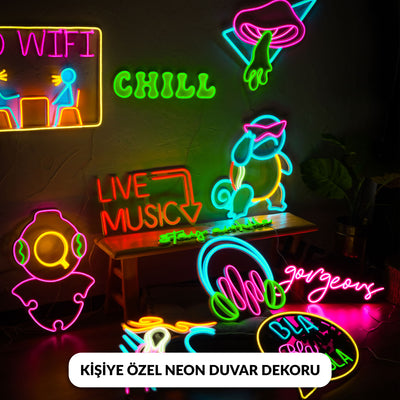 Mor, mavi ve pembe tonlarının birleÅtiÄi neon ıÅıltılar;gamer odalarınaOpen Mind Neon Duvar DekoruHOAGARD Rubber Duck Neon Duvar Dekorustüdyo duvarlarınavemodern yaÅam alanlarınaeÅsiz bir atmosfer kazandırır.