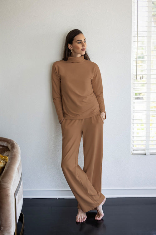 cozy terry pull over camel Close fitting cut